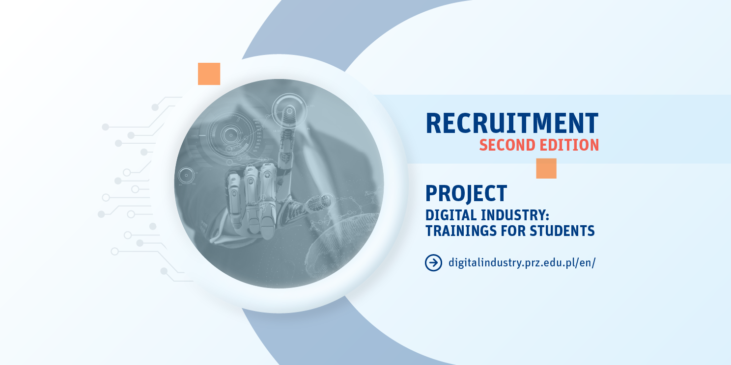 Details on the training courses are available on the project website: "Digital Industry: training for students" implemented under the SPINAKER NAWA Programme - Intensive International Training Programmes (IMPK). The programme is co-financed by the European Social Fund within the framework of the Operational Programme Knowledge Education Development, a non-competitive project entitled ”Supporting the institutional capacity of Polish higher education institutions through the creation and implementation of international study programmes” (Action: 3.3 Internationalization of Polish higher education), specified in the application for project co-financing no. POWR.03.03.00-00-PN16/18.