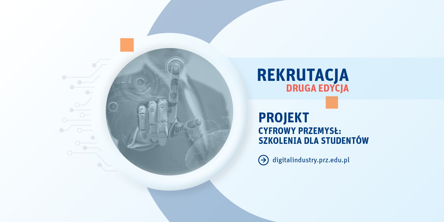 Szczegóły dotyczące szkoleń dostępne są na stronie projektu: „Cyfrowy przemysł: szkolenia dla studentów” realizowanego w ramach Programu SPINAKER NAWA – Intensywne Międzynarodowe Programy Kształcenia. Program jest współfinansowany ze środków Europejskiego Funduszu Społecznego w ramach Programu Operacyjnego Wiedza Edukacja Rozwój, projekt pozakonkursowy pt. „Wsparcie zdolności instytucjonalnej polskich uczelni poprzez tworzenie i realizację międzynarodowych programów studiów” (Działanie: 3.3 Umiędzynarodowienie polskiego szkolnictwa wyższego), określony we wniosku o dofinansowanie projektu nr POWR.03.03.00-00-PN16/18.